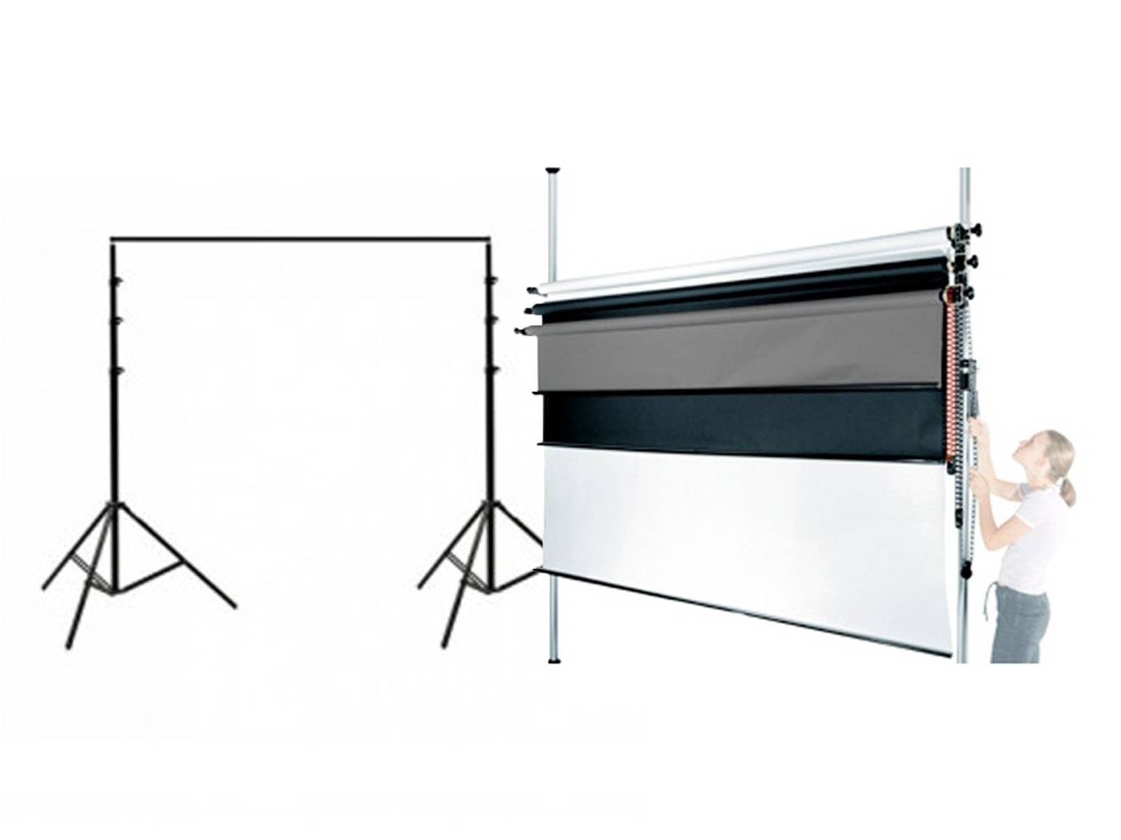 Légers et facilement transportables, ces kits supports de fond studio sont l'outil idéal pour démarrer la photo en studio ou pour les photographes se déplaçant souvent.